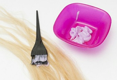 手袋を付けて混合液を作る→泡を出す→髪に付ける→もみこむ→放置→洗い流す